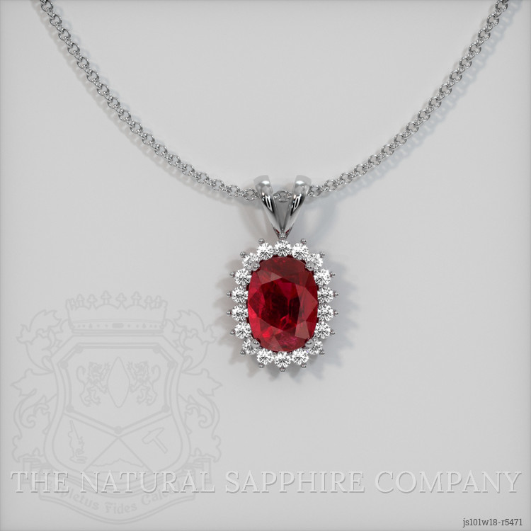 Halo Ruby Pendant 3.07 Ct., 18K White Gold
