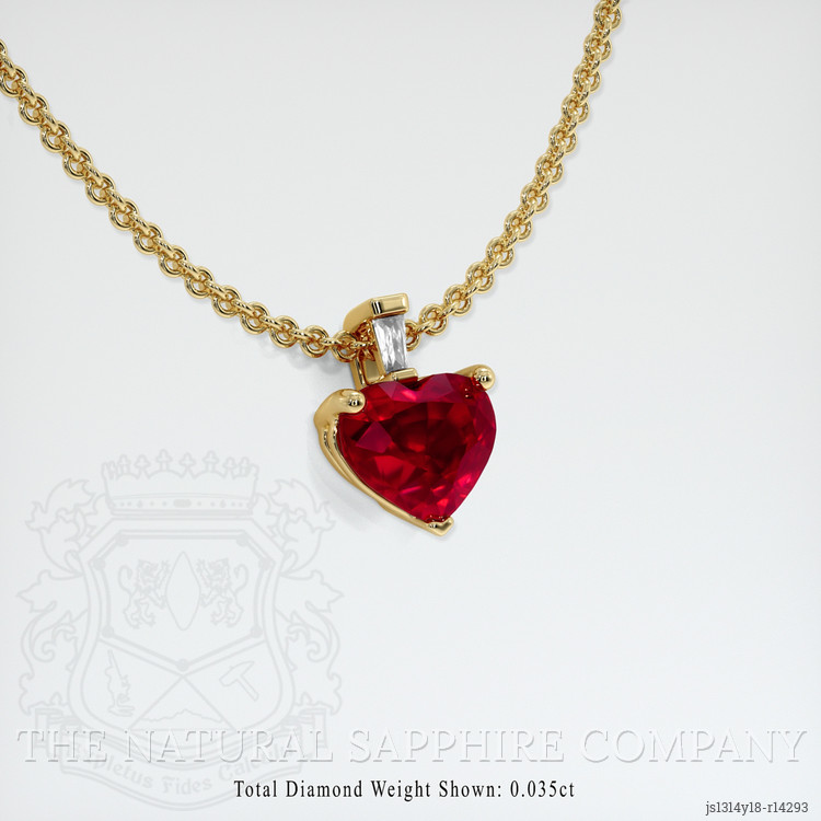 Elevate your ensemble with a remarkable symbol of elegance and sophistication from The Natural Ruby Company. Our breathtaking pendant, artfully set in lustrous 18K yellow gold, serves as an impeccable testament to refined craftsmanship and unparalleled luxury. This extraordinary piece features a genuinely breathtaking centerpiece—a GIA certified, 1.25 carat heart-shaped red ruby. Originating from the opulent mines of Madagascar, this ruby's richness resonates with a vivid depth that enchants lovers of exquisite jewelry worldwide.