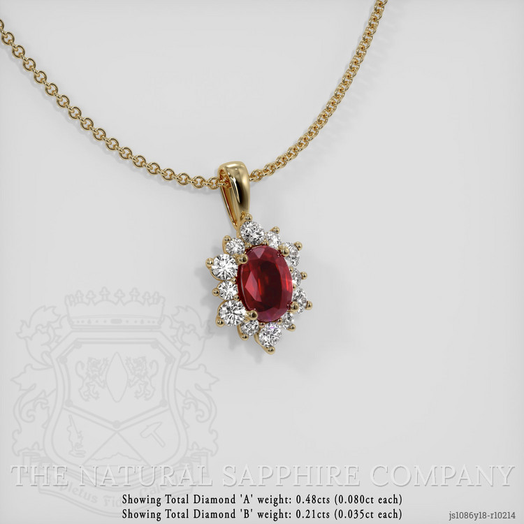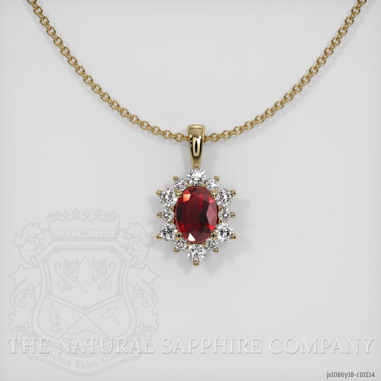 Halo Ruby Pendant 2.04 Ct., 18K Yellow Gold