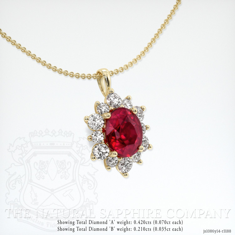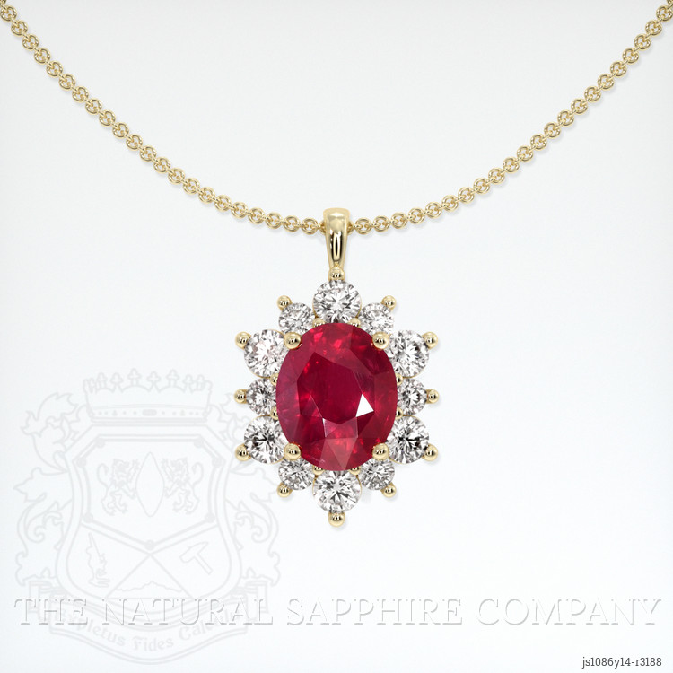 When searching for the perfect expression of love and elegance, the choice of gemstone is paramount. The Natural Ruby Company presents a timeless pendant that embodies both sophistication and rarity. Set entirely in 14K yellow gold, this pendant is a masterpiece featuring a breathtaking 2.31 carat oval-shaped red ruby. Certified by the GIA, the ruby boasts dimensions of 8.24 x 6.81 x 5.25 mm with a modified brilliant cut, ensuring it captures light beautifully. The vivid color saturation and excellent polish accentuate a natural charm rarely found in gemstones. With its slightly included clarity grade evaluated at eye level, this Tanzanian ruby is an authentic marvel of nature, unenhanced and radiant in its purest form.