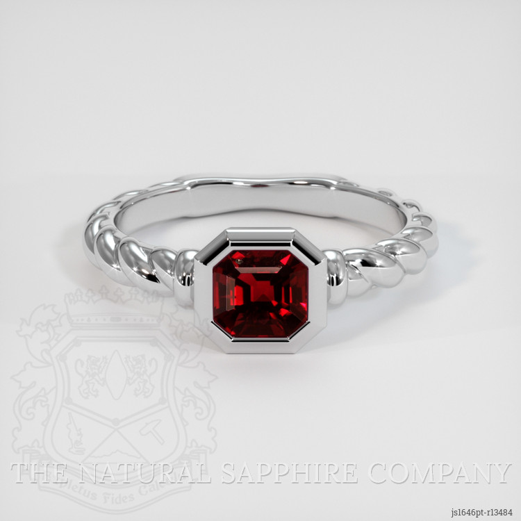 In your search for the ideal engagement ring or a rare gemstone for your collection, your quest ends here. This men's ring features a remarkable 0.89 carat asscher - octagon shape red ruby, measuring 5.37 x 5.18 x 3.53 mm, showcasing an exquisite asscher cut. It boasts a clarity grade of very slightly included, assessed at an eye level, with vivid color saturation and an excellent polish. This ruby hails from the mineral-rich lands of Mozambique.