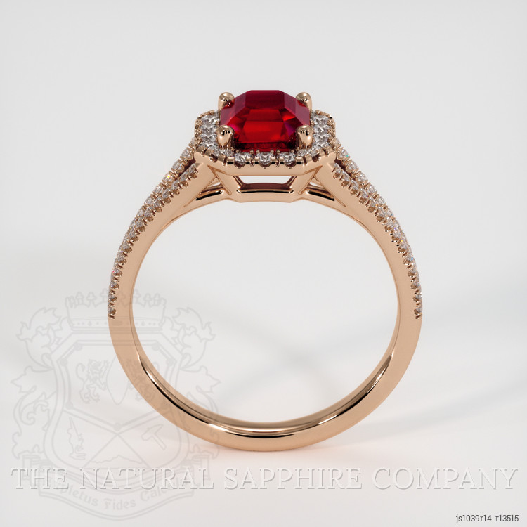 Step into a world of unparalleled elegance with The Natural Ruby Company’s exquisite ruby ring, a piece that embodies both luxury and meaning in every facet of its design. At the heart of this masterpiece lies a breathtaking GRS certified Vivid Red “Vibrant” ruby, hailing from the mineral-rich lands of Mozambique. Weighing 1.55 carats and meticulously crafted into an asscher-octagon shape, this ruby is a testament to the Earth's ability to create unparalleled beauty. With dimensions of 6.22 x 5.54 x 4.94 mm, it proudly boasts a clarity grade of eye clean and a vivid color saturation that promises to capture and reflect the deepest passions of its wearer. Enhanced only by heat treatment, its pristine nature remains largely untouched, allowing it to serve as a stirring emblem of inner strength and enduring love.