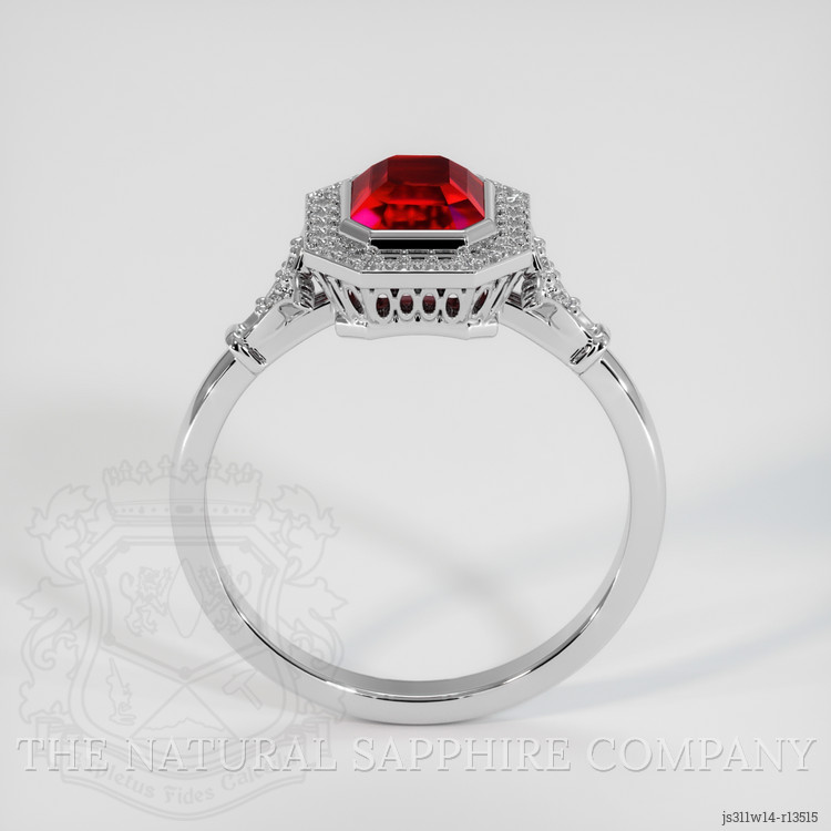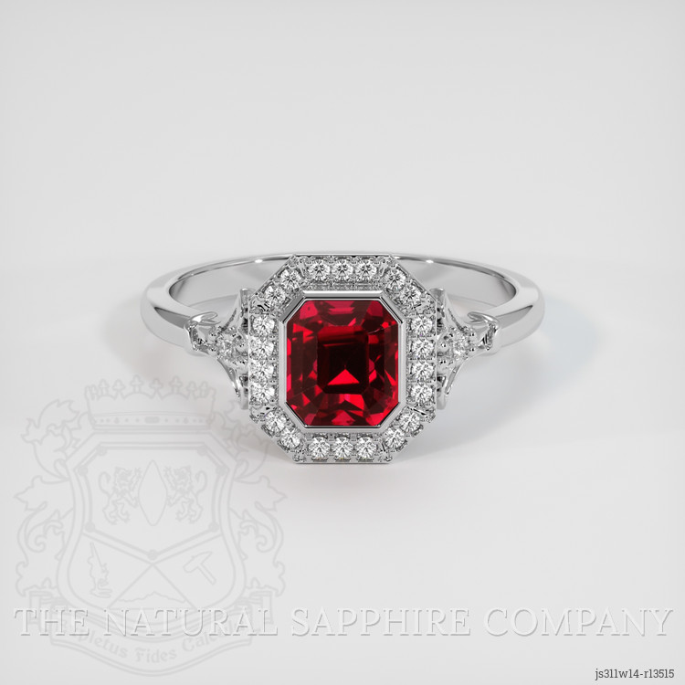 Introducing a masterpiece from The Natural Ruby Company, this exquisite ring showcases a stunning GRS-certified Vivid Red ruby, meticulously sourced from Mozambique. At the heart of this elegant piece lies a 1.55 carat asscher-octagon shaped ruby, dimensions precisely marked at 6.22 x 5.54 x 4.94 mm. The asscher cut employed here not only enhances the intrinsic beauty of the gemstone but also allows for maximum brilliance and fire, a testament to the skilled craftsmanship behind its creation. With eye-clean clarity and vivid color saturation, this ruby radiates a lustrous sheen, perfectly capturing the passionate allure associated with the finest rubies. The impeccable polish further elevates its visual appeal, promising a flawless reflection at every glint of light.