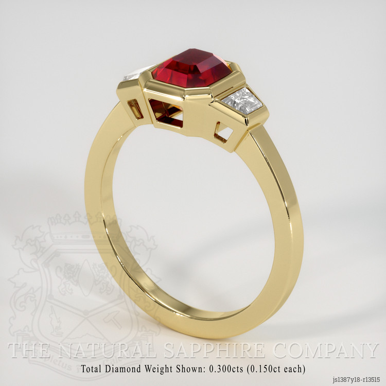 At The Natural Ruby Company, we present an exquisite piece that transcends time and trend, offering a profound nod to historical masterpieces through its exceptional setting style and remarkable gemstone quality. The centerpiece of this ring is a GRS certified Vivid Red “Vibrant” ruby, weighing 1.55 carats. This exceptional ruby is an Asscher-octagon shape, measuring 6.22 x 5.54 x 4.94 mm, and boasts an Asscher cut that is richly symmetrical, allowing for the play of light that showcases its vivid color saturation. Its clarity is graded eye clean, ensuring that there are no visible inclusions, which enhances its fiery red hue. Originating from Mozambique, this ruby offers not just beauty but also the promise of enduring quality that is fitted perfectly into the vintage-like charm of this ring.