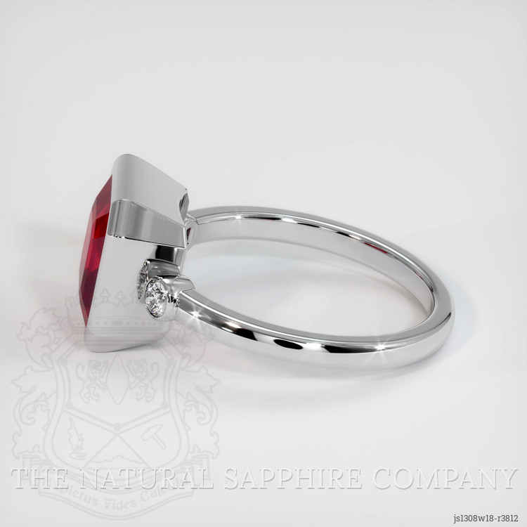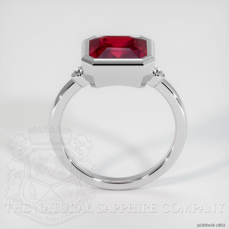 Three Stone Ruby Ring 4.21 Ct., 18K White Gold