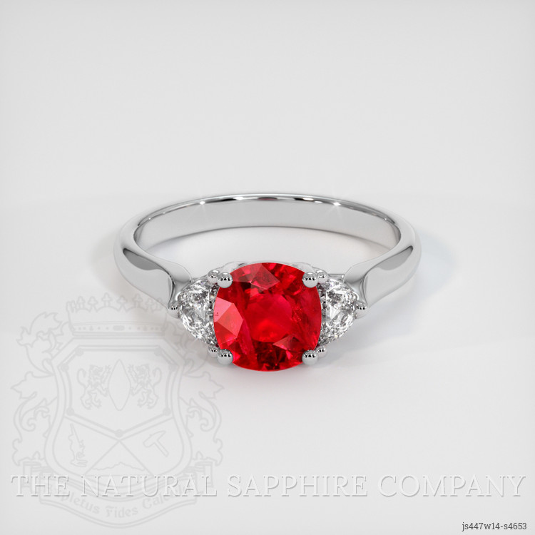 Three Stone Ruby Ring 1.11 Ct., 14K White Gold