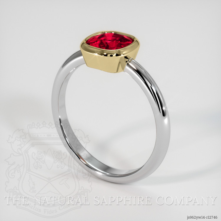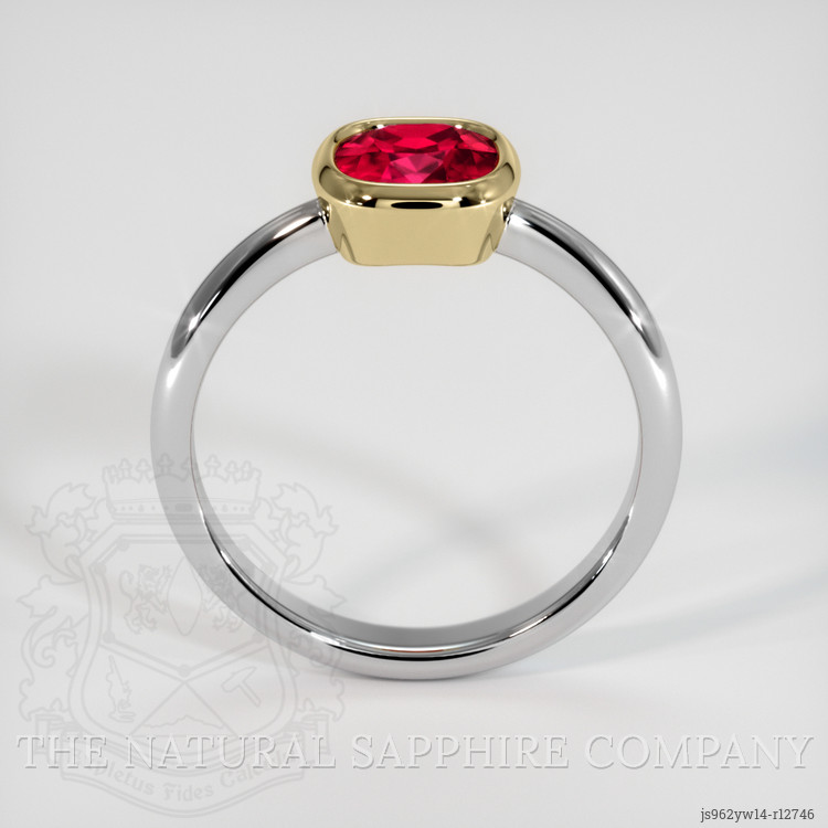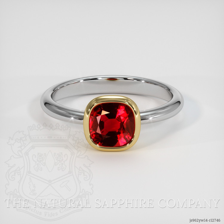 Encased in a sophisticated setting of 18K yellow gold and 18K white gold, this ring offers a perfect blend of classic charm and modern sophistication. The contrasting metals not only highlight the exquisite ruby but also create a striking and harmonious balance, adding to the overall allure of the ring. The polished finish and meticulous craftsmanship of the band ensure an impeccable sheen that complements the gem’s radiant beauty and enhances its fiery red hue.