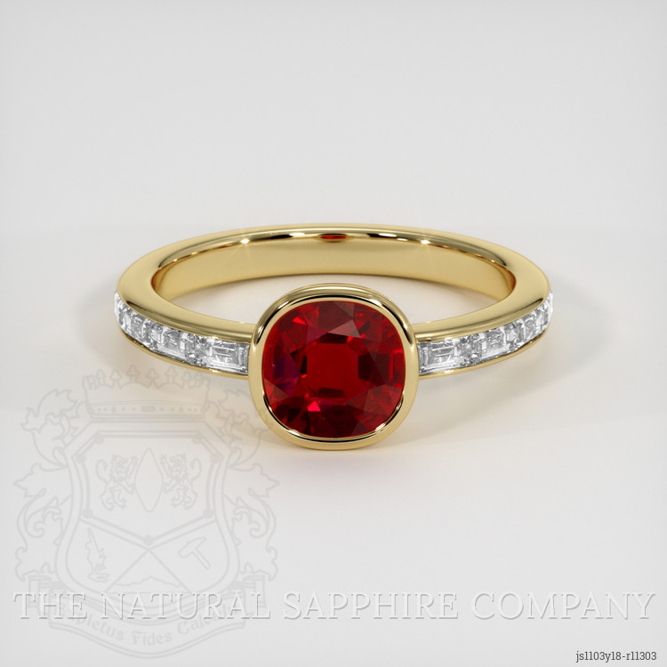 The 18K yellow gold setting is a crucial element of this ring’s design, chosen not just for its richness and durability but also for the way it magnifies the gemstone's vibrant hue. Yellow gold provides a warm, harmonious backdrop that enhances the ruby’s intense color, allowing it to gleam with unrivaled brilliance. This thoughtful setting choice is essential in framing the gem to best highlight its natural beauty, creating an alluring interplay of color and light. Furthermore, the gold band’s lustrous finish complements the overall piece, symbolizing the timeless appeal and lasting value that connoisseurs cherish.