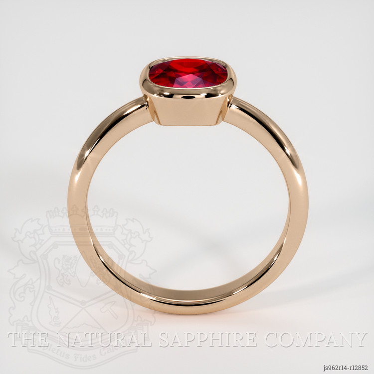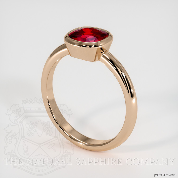 Set in luxurious 18K rose gold, the ring's band complements the vivid color of the ruby, creating a harmonious balance between metal and stone. Rose gold is celebrated for its warmth and elegance, adding a contemporary twist to classic designs. Its subtle pinkish hue accentuates the vibrancy of the red ruby, providing a striking visual contrast that is both sophisticated and fashionable. This blend of materials and colors ensures the ring's adaptability across different attires and events, from business meetings to evening soirees.
