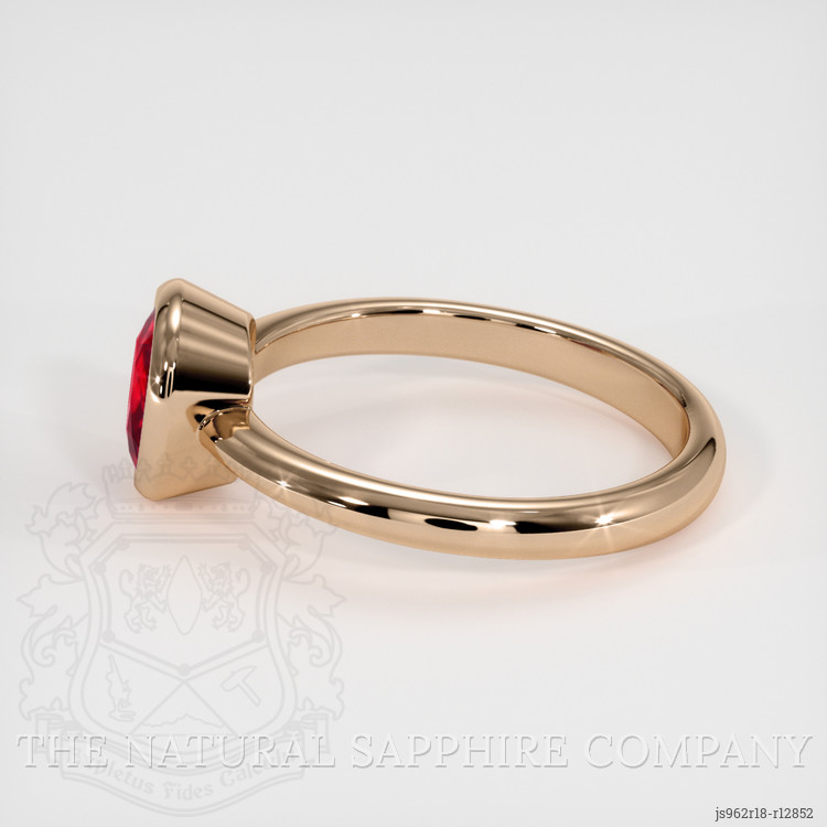 Set in luxurious 18K rose gold, the ring's band complements the vivid color of the ruby, creating a harmonious balance between metal and stone. Rose gold is celebrated for its warmth and elegance, adding a contemporary twist to classic designs. Its subtle pinkish hue accentuates the vibrancy of the red ruby, providing a striking visual contrast that is both sophisticated and fashionable. This blend of materials and colors ensures the ring's adaptability across different attires and events, from business meetings to evening soirees.