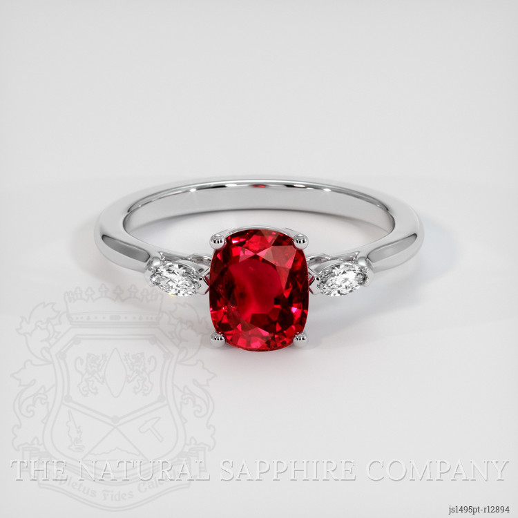 Three Stone Ruby Ring 1.64 Ct., Platinum 950