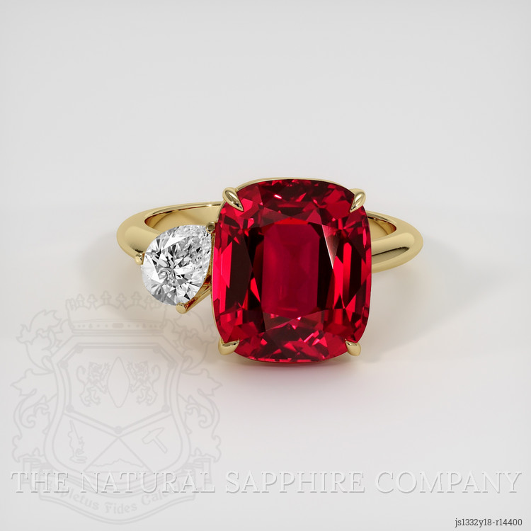 Introducing an exquisite masterpiece by The Natural Ruby Company, where refined craftsmanship meets extraordinary gemstones. This ring is adorned with a mesmerizing GRS certified Vivid Red “Pigeon’s Blood” ruby, weighing an impressive 10.03 carats. Its cushion shape and dimensions of 12.65 x 10.91 x 7.40 mm perfectly embody a blend of elegance and grandeur. With a mixed brilliant cut, this ruby radiates an exceptional luminance, resulting in vivid color saturation. The clarity grade of eye clean ensures that the stone is impeccably clear and visually flawless, making it a focal point of sophistication. Enhanced through heat treatment, the ruby originates from the esteemed mines of Mozambique, which are famed for producing some of the world’s finest gems.