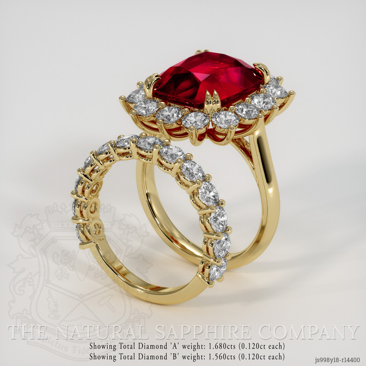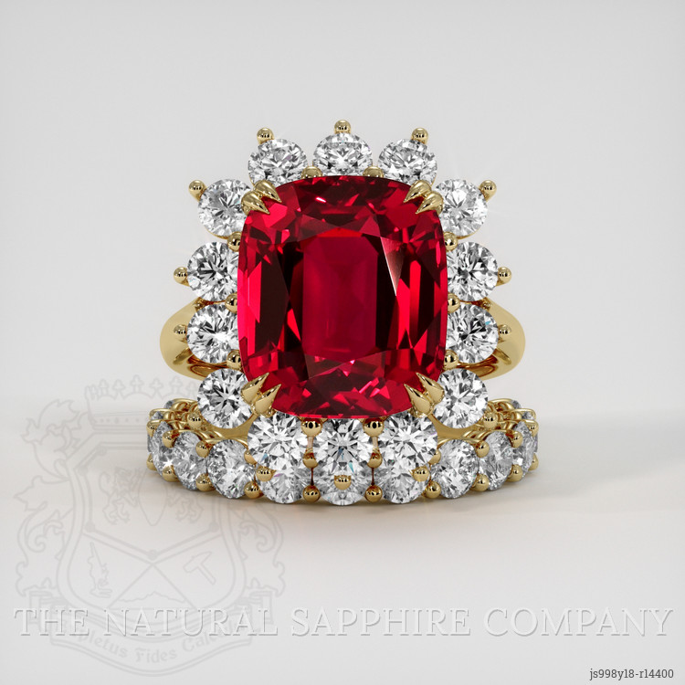 Halo Ruby Ring 10.03 Ct., 18K Yellow Gold