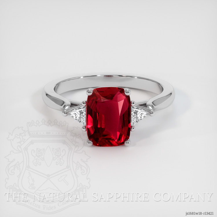 Three Stone Ruby Ring 2.01 Ct., 18K White Gold