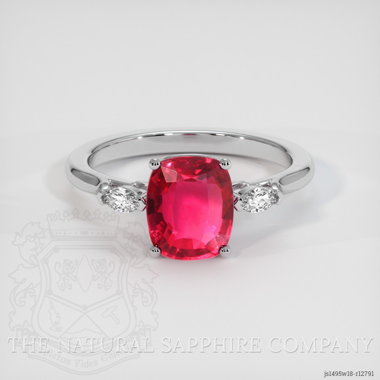 Three Stone Ruby Ring 2.02 Ct., 18K White Gold
