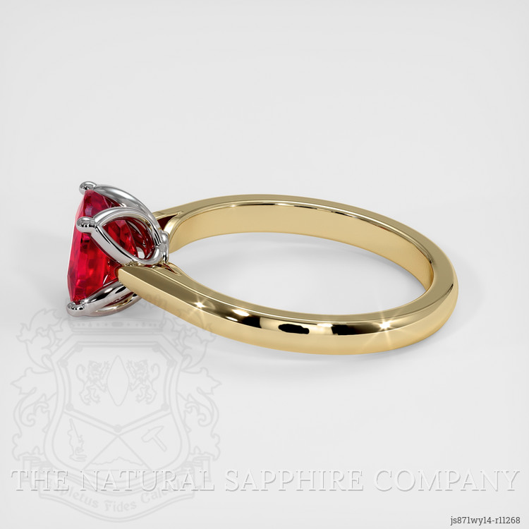 Distinctively set in both 14K white and yellow gold, this ring is a modern tribute to classical settings, offering a harmonious blend of traditional appeal and contemporary style. The unique dual gold setting provides both contrast and stability, highlighting the vivid color of the ruby while offering durability, unlike settings that rely solely on a single metal. While some rings might focus exclusively on ornate designs compromising on the quality of the gemstone, our ring marries simplicity with substance—emphasizing the brilliance of the stone while ensuring longevity and everyday wearability.