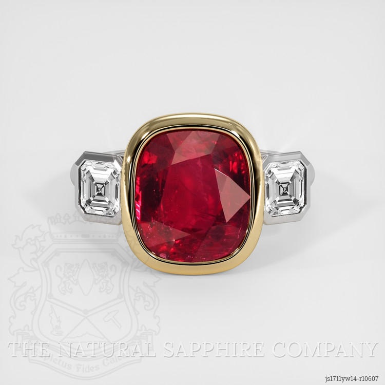Our choice of 14K yellow gold and 14K white gold for the setting brings the design together seamlessly. The robust yet elegant setting ensures durability while accentuating the gemstone's natural beauty. This combination of metals not only enhances the visual appeal but also underpins the ring's structural integrity. It marries the modern with the classic, presenting a versatile design that promises longevity. With this stunning piece, you gain a worthy juxtaposition of bold red and calming gold and silver hues.