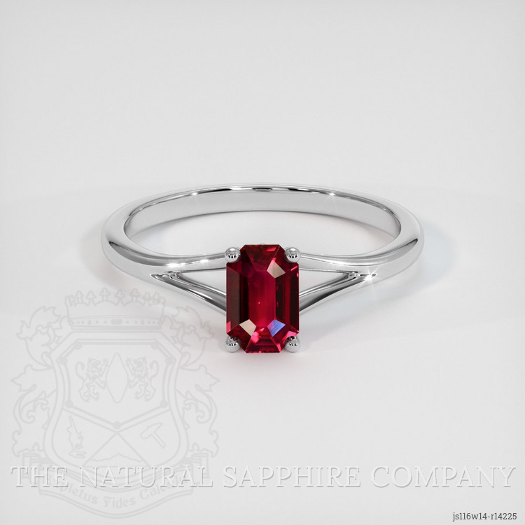 Solitaire Ruby Ring 0.70 Ct., 14K White Gold