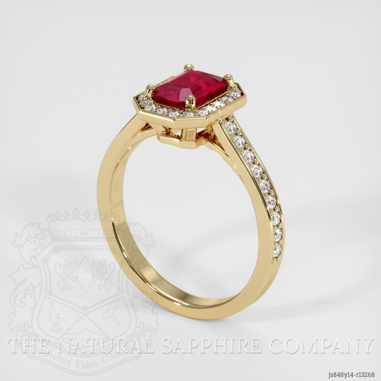 Introducing a remarkable creation from The Natural Ruby Company, this exquisite ring embodies the essence of new beginnings. At its heart lies a stunning 1.03 carat emerald cut ruby, sourced from the rich soils of Mozambique. This ruby is characterized by its intense color saturation, elevating it beyond a mere accessory to become a true emblem of elegance. With dimensions of 7.03 x 4.86 x 3.05 mm, its transparency reveals just slight inclusions at eye level, demonstrating its natural purity while maintaining an excellent polish. The emerald cut enhances its intrinsic beauty, offering a harmonious balance between modern sophistication and timeless tradition.