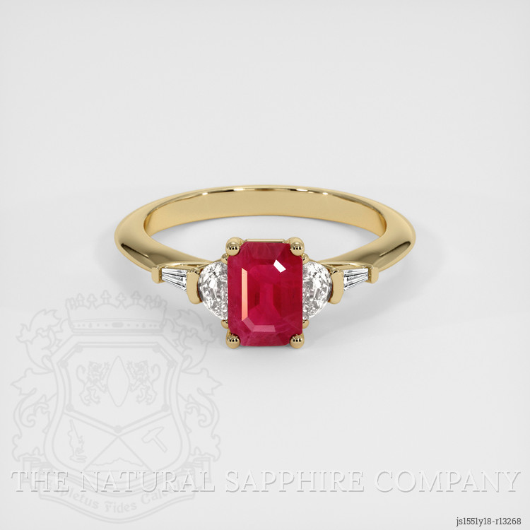 Embrace the enchanting allure of genuine beauty with our exquisite ring from The Natural Ruby Company, featuring a stunning 1.03 carat emerald cut red ruby of dazzling transparency. Imagine a moment, forever engraved in memory, where the flicker of light through this Mozambican ruby captivates the peering eyes, each facet glinting with intense color saturation. Its clarity grade of very slightly included, evaluated at eye level, speaks volumes of its natural allure. An exceptional gem, it evokes emotions of pure love and joy, creating bonds that transcend the ordinary, uniting hearts with its luxuriant sparkle.