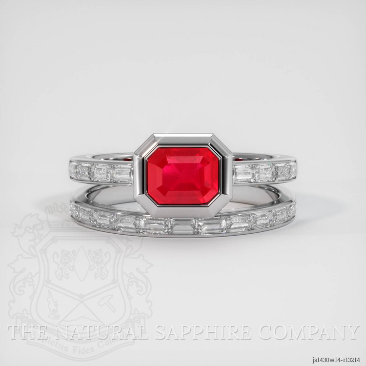 Wedding Set Ruby Ring 1.14 Ct., 14K White Gold