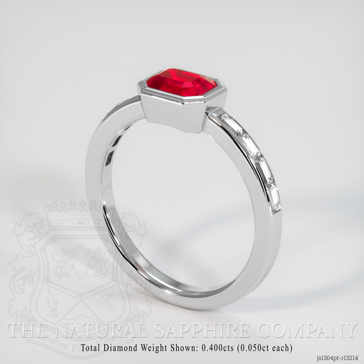 Crafted by dedicated artisans, this ruby's destiny culminates in a masterpiece ring. Set in lustrous 18K white gold, the stone’s vivid red hue reflects passions untold. Surrounded by dazzling white diamonds, the ruby is complemented with exquisite precision. These straight baguette-shaped diamonds, weighing approximately 0.40 carats, carry a clarity grade of Very Slightly Included, highlighting their E color grade—creating an effulgent contrast against the ruby's rich tones. Each diamond, ethically sourced and conscientiously selected, tells its own story of discovery. Together with the ruby, they compose a harmonious symphony of nature's splendor, expertly fashioned by The Natural Ruby Company’s skilled craftspeople.