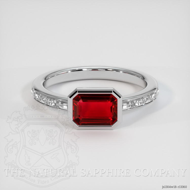 Adorned alongside this captivating ruby are meticulously set baguette-shaped diamonds that grace the ring's band. These 0.40 carat magnificent stones, with a clarity graded between VS1 and VS2 and a pristine E color grade, complement the red ruby, crafting a harmonized vision. The natural sparkle of the diamonds is like the many facets of a lasting partnership, brilliant yet subtly integrated into the fabric of this precious creation. Expert craftsmen at The Natural Ruby Company ensure that these gems sit flawlessly in a setting of radiant 18K white gold, lending an unspoken elegance and strength to this timeless piece.