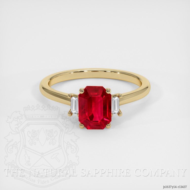 Three Stone Ruby Ring 1.61 Ct., 14K Yellow Gold