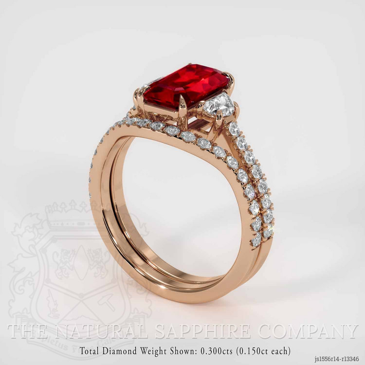 Three Stone Ruby Ring 2.01 Ct., 14K Rose Gold