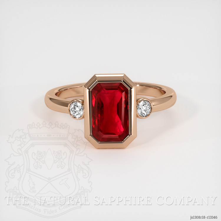 Three Stone Ruby Ring 2.01 Ct., 18K Rose Gold