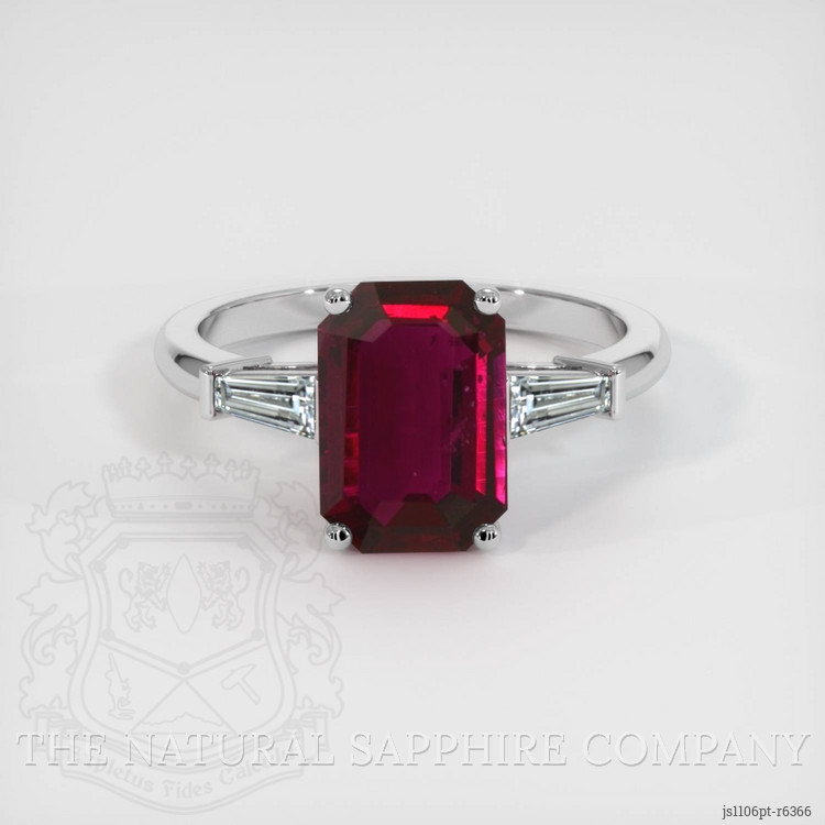 Three Stone Ruby Ring 2.65 Ct., Platinum 950