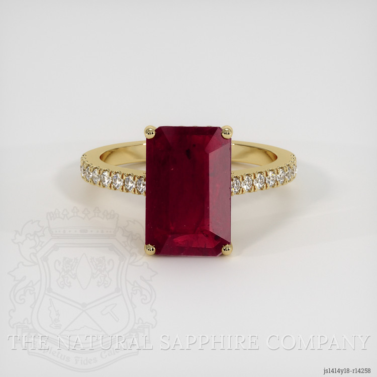 The Natural Ruby Company presents an exquisite masterpiece that epitomizes sophistication and expert artisanal craftsmanship. At the heart of this remarkable ring lies a captivating 3.07 carat ruby of premium quality sourced from Mozambique. The ruby boasts an emerald cut, measuring 11.06 x 7.20 x 3.20 mm, which enhances its transparency and elegant geometry. Its slightly included clarity at eye level adds character, making it a unique gem with vivid color saturation that captivates with intense visual impact. The impeccable polish brings out the mesmerizing hues of the ruby, contributing to its overall appeal.