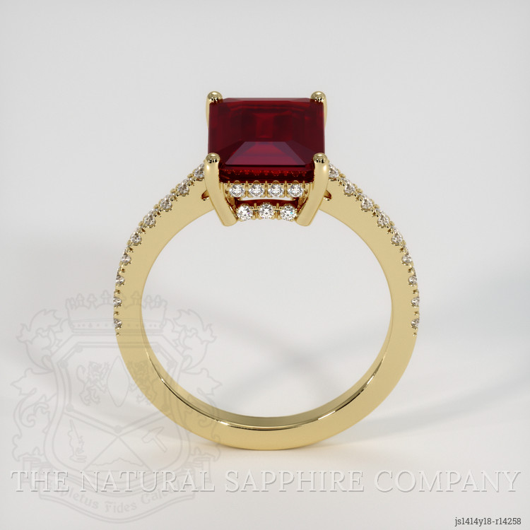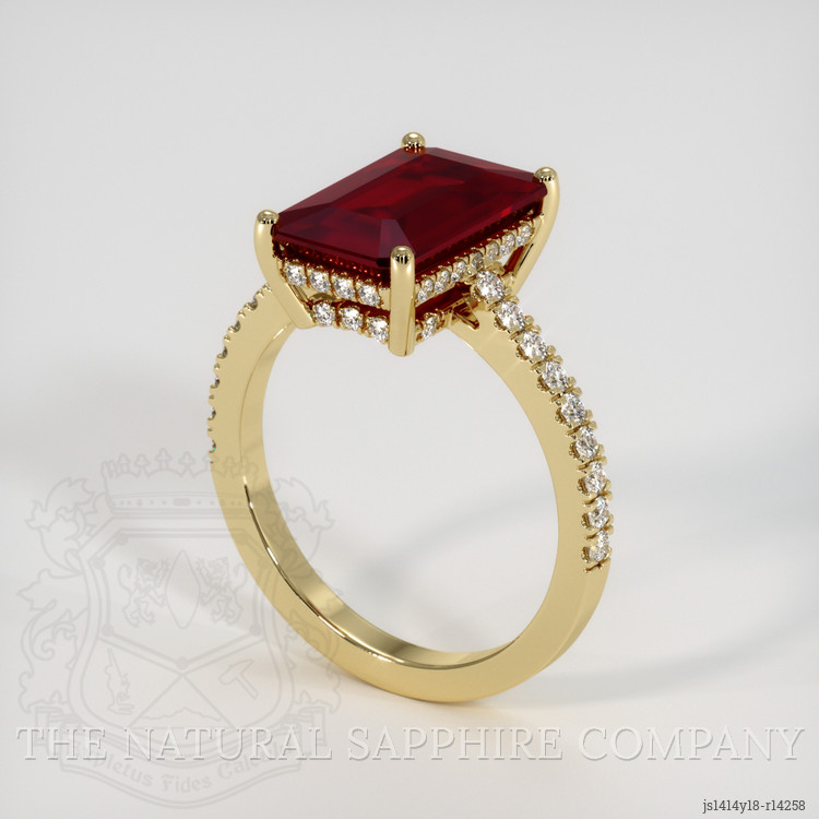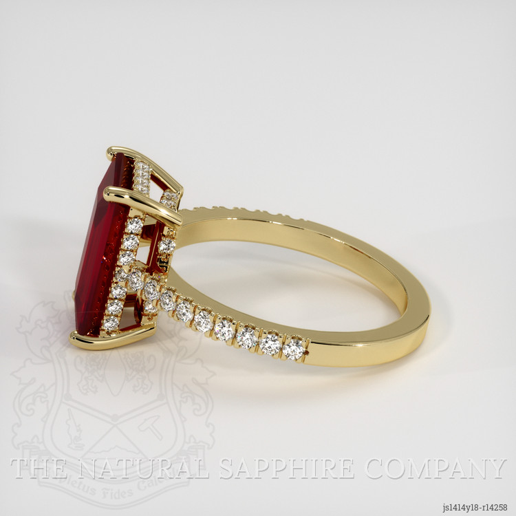 This ring’s sophisticated design is beautifully complemented by an 18K yellow gold setting. The choice of metal not only provides an exquisite contrast to the vibrancy of the ruby but also ensures durability. The sleek band is crafted to deliver exceptional comfort, permitting effortless all-day wear without compromising style. Each detail, from the arrangement of diamonds to the seamless finish of the band, reflects our commitment to excellence and refined elegance.
