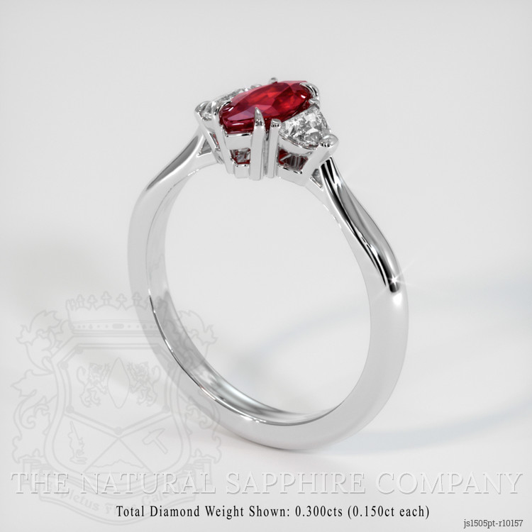 Three Stone Ruby Ring 0.57 Ct., Platinum 950