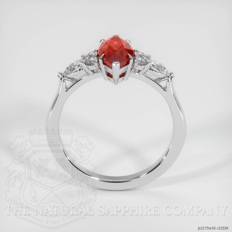 Also featured in the ring: White pear shaped diamonds, weighing approx 0.20 carats, clarity Very Slightly Included (VS1, VS2) and a color grade of E.