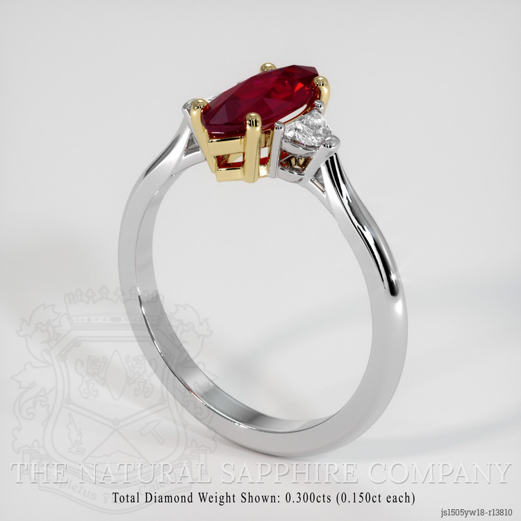 Handcrafted in a blend of 18K yellow gold embracing the ruby and 18K white gold holding the moonlit diamonds, the ring emerges as a unified testament to opulence and bespoke artistry. Gold, a true component of eternal beauty, magnifies the vivacity of the centerpiece. It stands as a testament to the balance between strength and elegance that only nature can inspire, framed by the practiced artisans of The Natural Ruby Company. The combination of metals not only captivates the beholder but also serves as a modern reflection of timeless devotion.