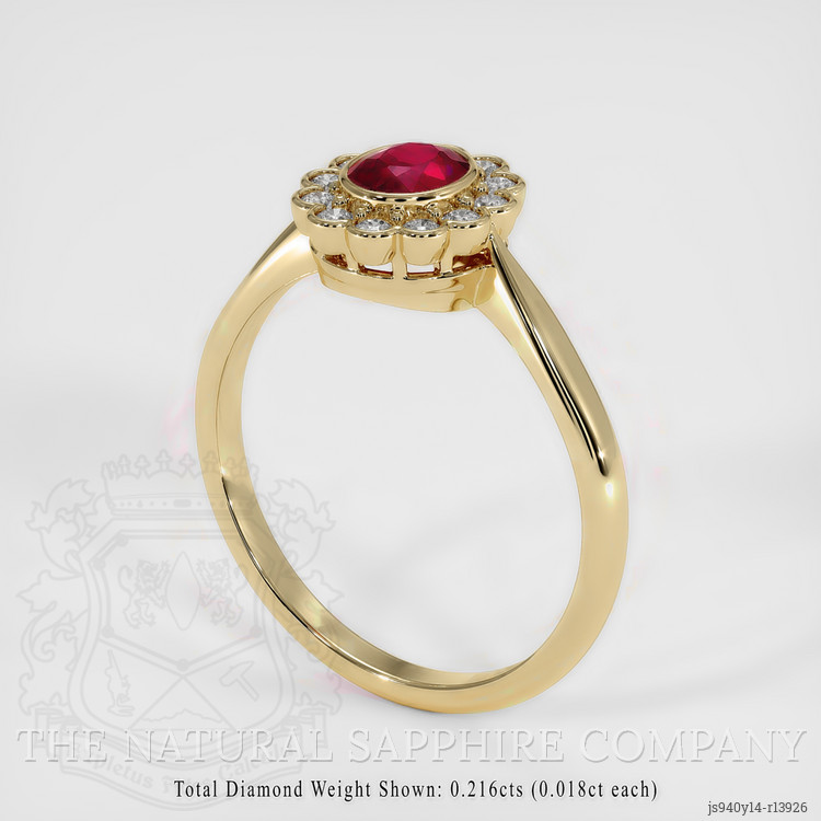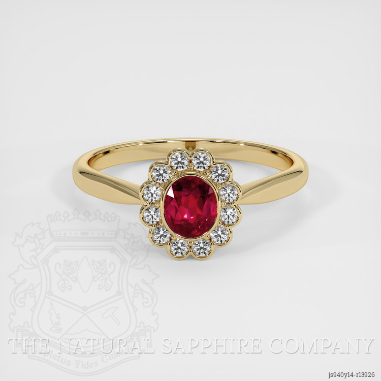 The ruby, with its deep roots and storied past, embodies a rich history that speaks to its timeless nature. Originating from Mozambique, this red ruby is a testament to the land's unique geological gifts. Its oval shape, weighing 0.53 carats, showcases a mixed brilliant cut, revealing a remarkable transparency that captivates the eye. This gemstone's clarity, graded as very slightly included, ensures that its brilliance remains largely unobstructed, rivaling other high-end rings renowned in the market. The vivid color saturation of the ruby amplifies its appeal, adding a layer of depth that is both vibrant and alluring. Complementing the elegance of the ruby are white round-shaped diamonds, with a combined weight of approximately 0.216 carats. These diamonds possess a clarity grade of Very Slightly Included, alongside a color grade of F, highlighting their near-flawless quality. The diamonds enhance the ruby, creating a striking contrast that highlights the skillful design of the ring. Set entirely in 14K yellow gold, the band exudes a warmth that harmonizes with the gemstones, creating a piece that is not only luxurious but deeply connected to tradition and legacy. The choice of yellow gold frames the ruby and diamonds elegantly, adding a classic touch that ensures the ring's style remains evergreen. Such a design appeals not only to those who appreciate modern elegance but also to connoisseurs of tradition and legacy, whispering tales of ancient origins and timeless beauty.