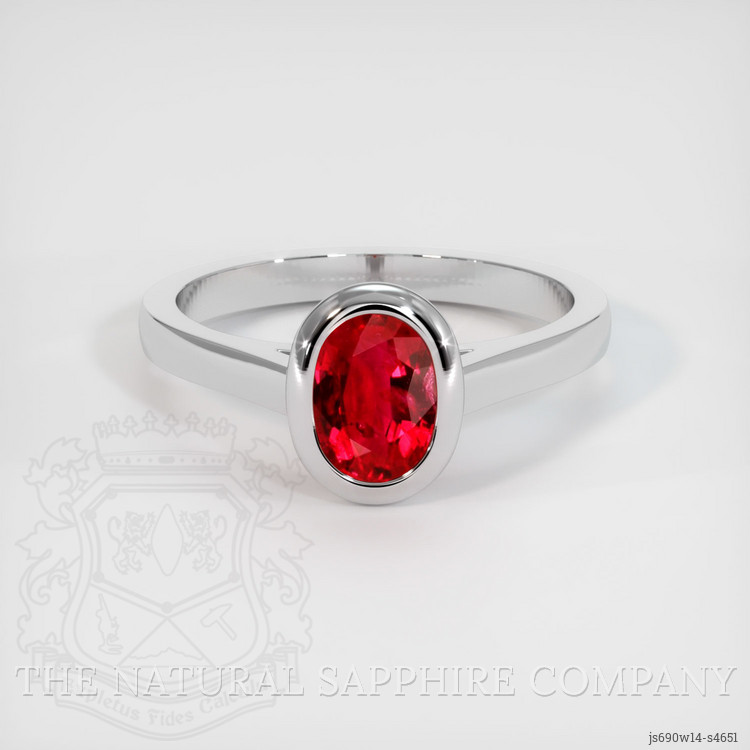 Bezel Ruby Ring 0.85 Ct., 14K White Gold
