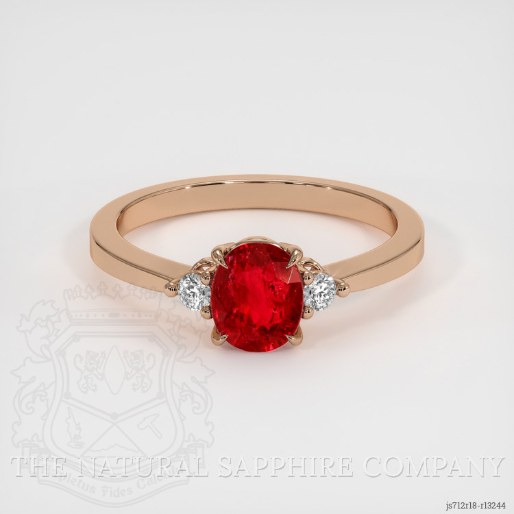 Three Stone Ruby Ring 1.12 Ct., 18K Rose Gold