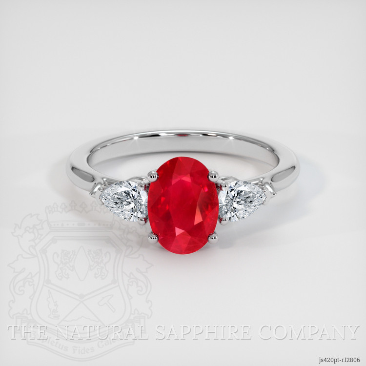 Three Stone Ruby Ring 1.21 Ct., Platinum 950