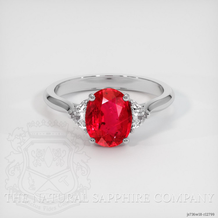 Three Stone Ruby Ring 1.22 Ct., 18K White Gold