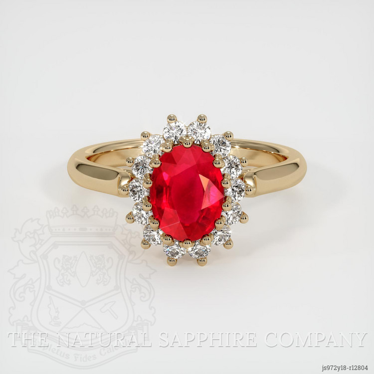 Halo Ruby Ring 1.30 Ct., 18K Yellow Gold