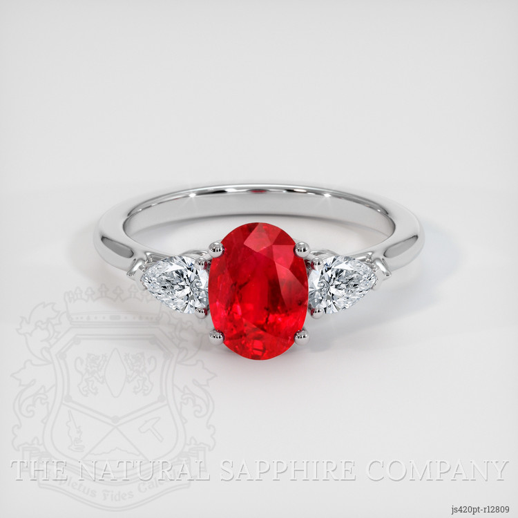 Three Stone Ruby Ring 1.30 Ct., Platinum 950