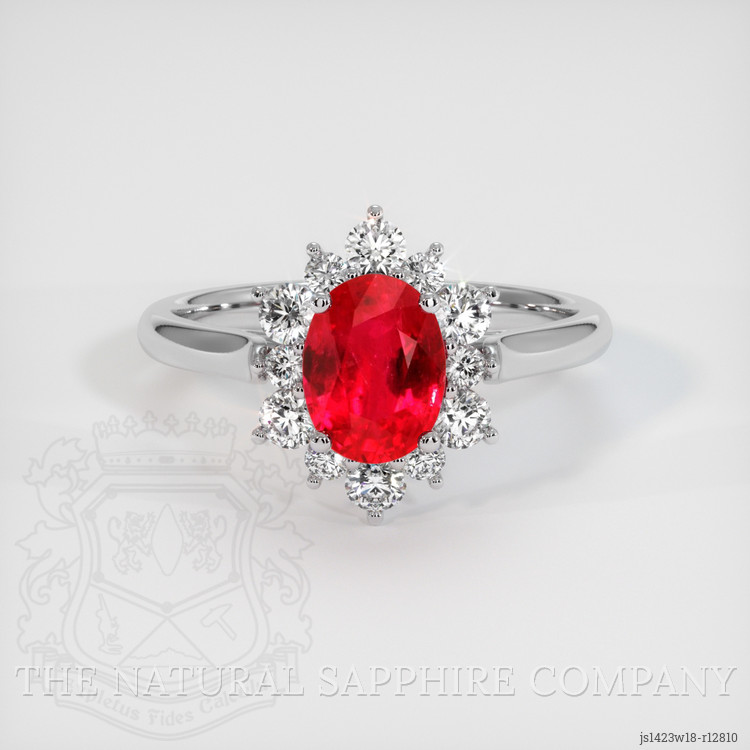 Halo Ruby Ring 1.41 Ct., 18K White Gold
