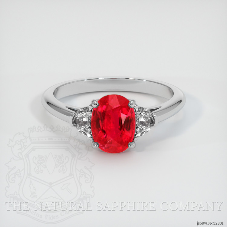 Three Stone Ruby Ring 1.42 Ct., 14K White Gold