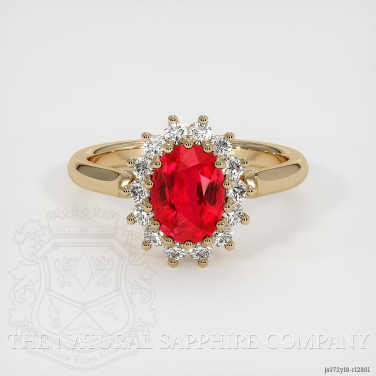Halo Ruby Ring 1.42 Ct., 18K Yellow Gold