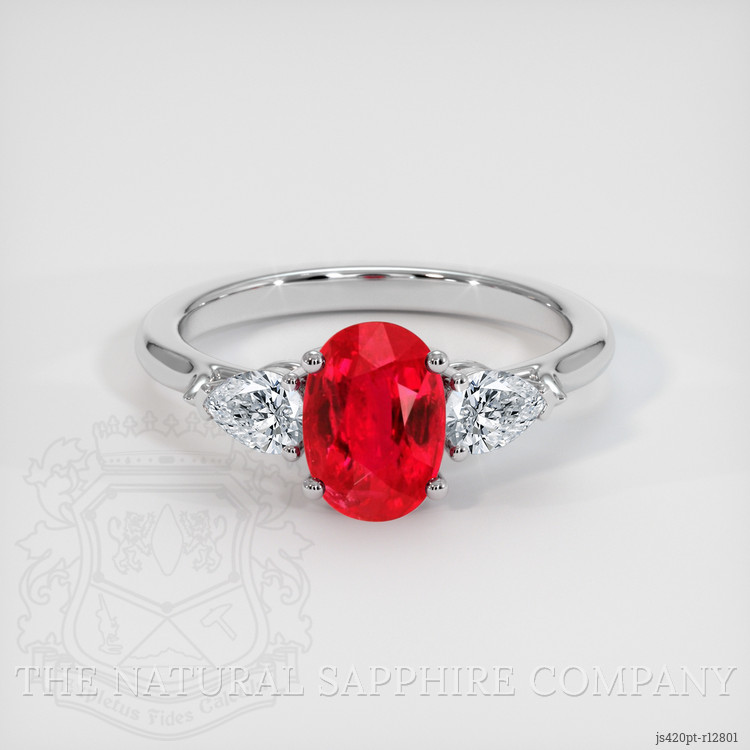 Three Stone Ruby Ring 1.42 Ct., Platinum 950
