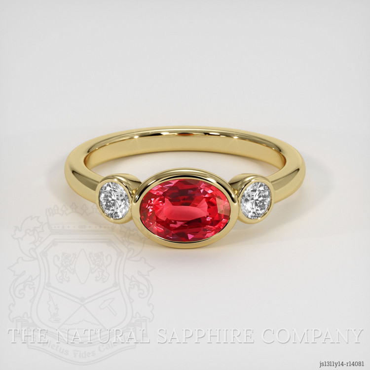 Three Stone Ruby Ring 1.51 Ct., 14K Yellow Gold