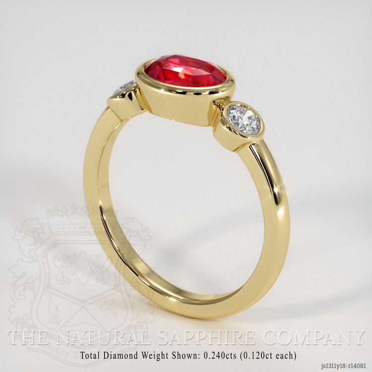 Three Stone Ruby Ring 1.51 Ct., 18K Yellow Gold