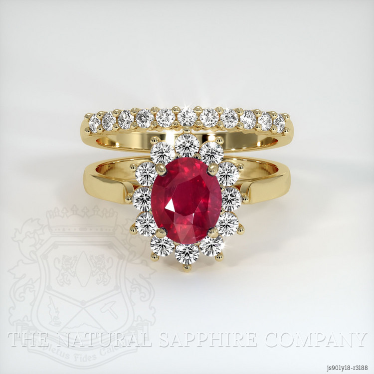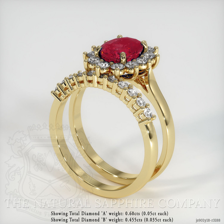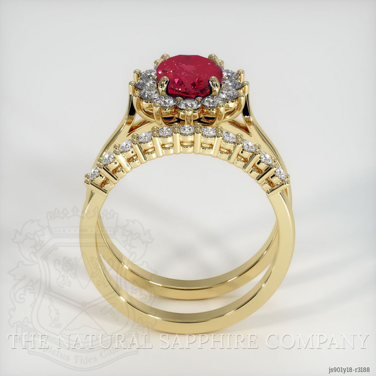 Halo Ruby Ring 2.31 Ct., 18K Yellow Gold